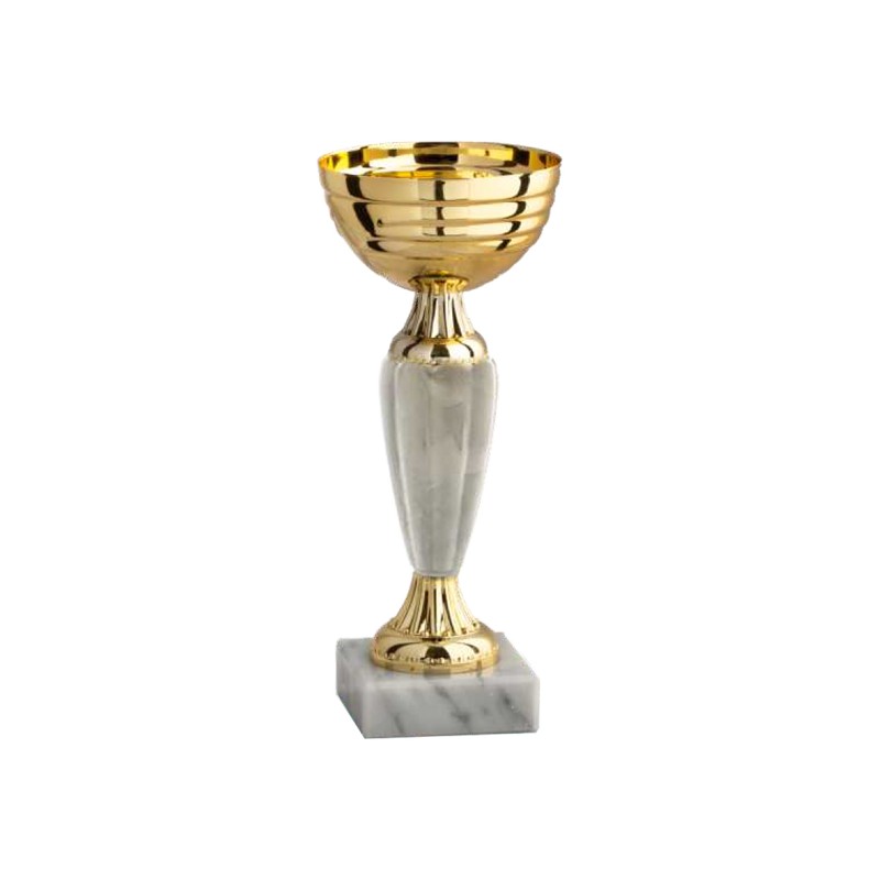 Tazza in metallo, gambo in plastica, base in marmo – colore Oro – Mini coppa bella ed elegante con manico centrale che ricorda i vecchi gambi in onice, con colorazioni innovative a contrasto